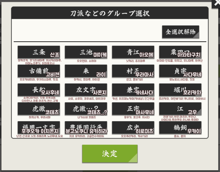 라이파 애들 말하는듯! 호타루마루 아이젠쿠니토시 아카시쿠니유키! 두자루 넣으면 된당